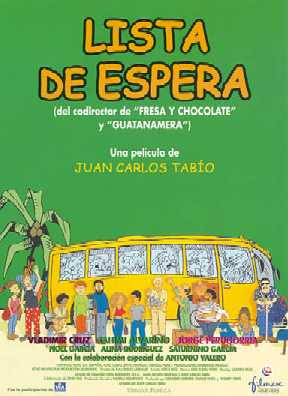 Lista de Espera. Producción: DMVB Films, ICAIC, Le Studio Canal +, Producciones Amaranta, Road Movies Filmproduktion, Tabasco Films, Tornasol Films, Mariela Besuievski, Ignacio Cobo. Dirección: Juan Carlos Tabío. Guión: Juan Carlos Tabío, Senel Paz y Arturo Arango, basado en cuento homónimo del tercero. Año: 1999. Fotografía en color: Hans Burman. Música: José María Vitier. Edición: Carmen Frías. Intérpretes: Vladimir Cruz (Emilio), Thaimi Alvariño (Jacqueline), Jorge Perugorria (Rolando, el ciego). Duración: 115 minutos. Distribución: Latina.